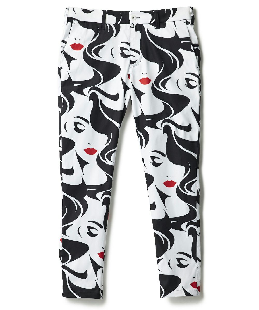 動きやすいポリエステルツイル素材を使用した柄ロングパンツ。