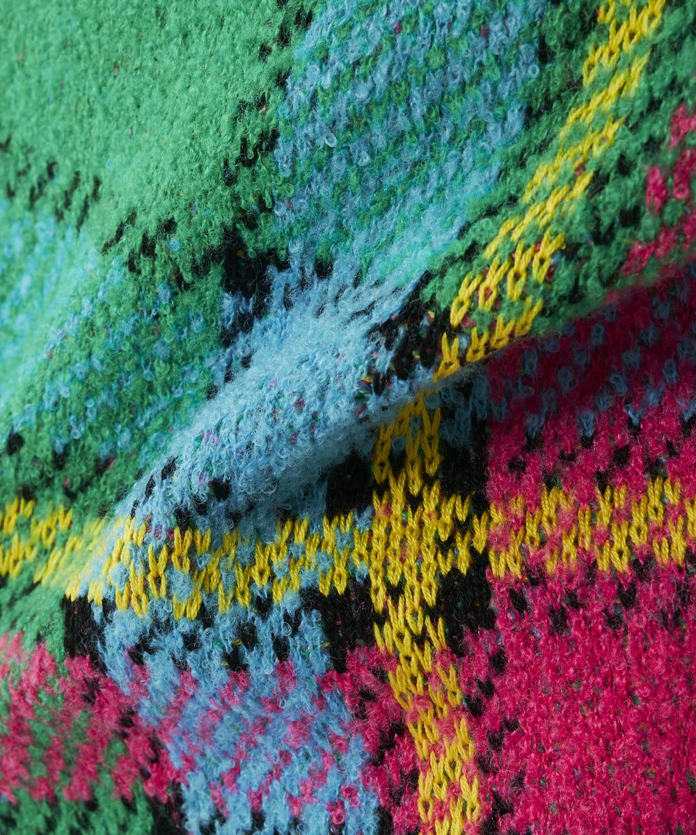 トレンドのチェック柄のクルーネックセーター。