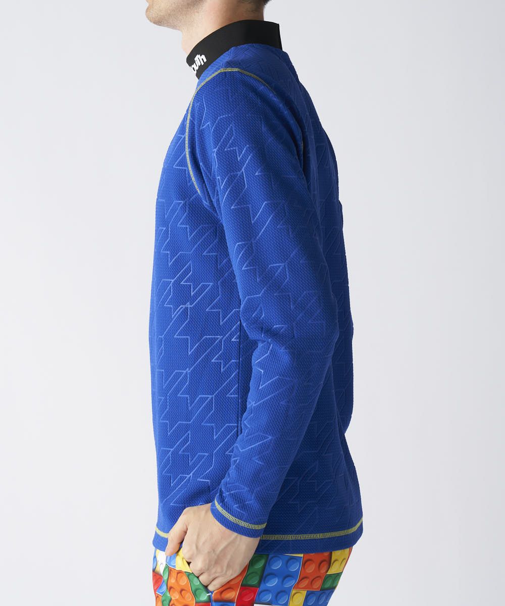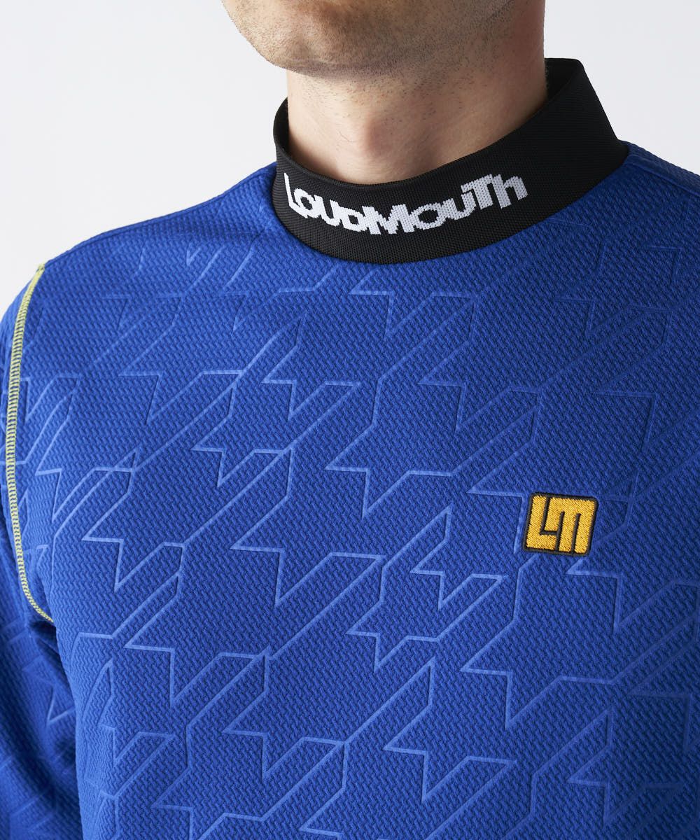 凹凸感のある表面が特徴のモックネック長袖シャツ。