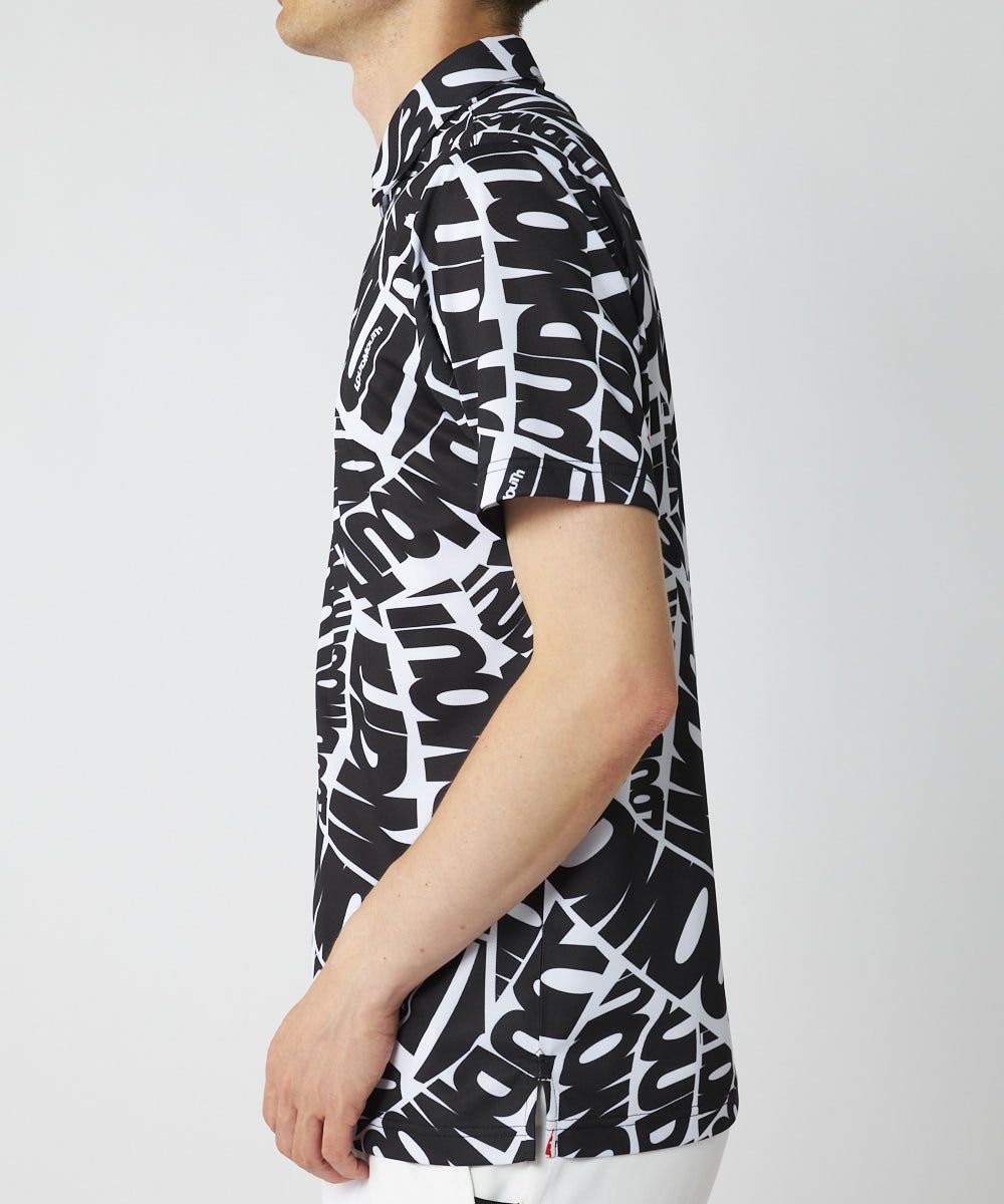ポリエステル素材の柄半袖シャツはさらっととした肌触りがポイント。