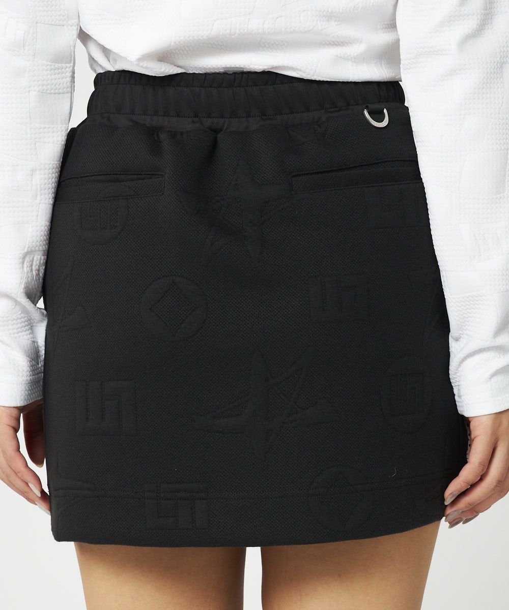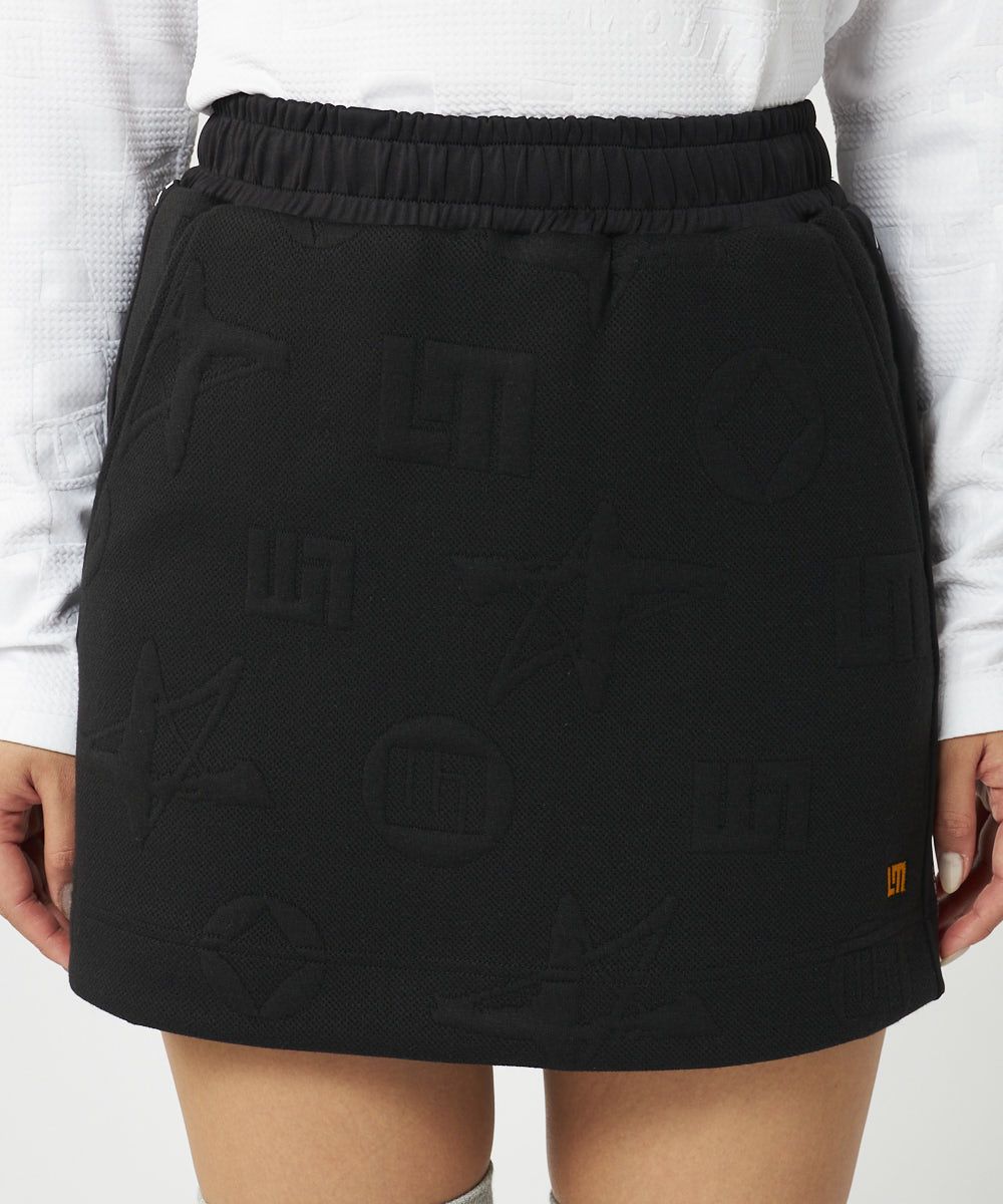 レディース LMエンボス袋ジャガード 総ゴムスカート ブラック