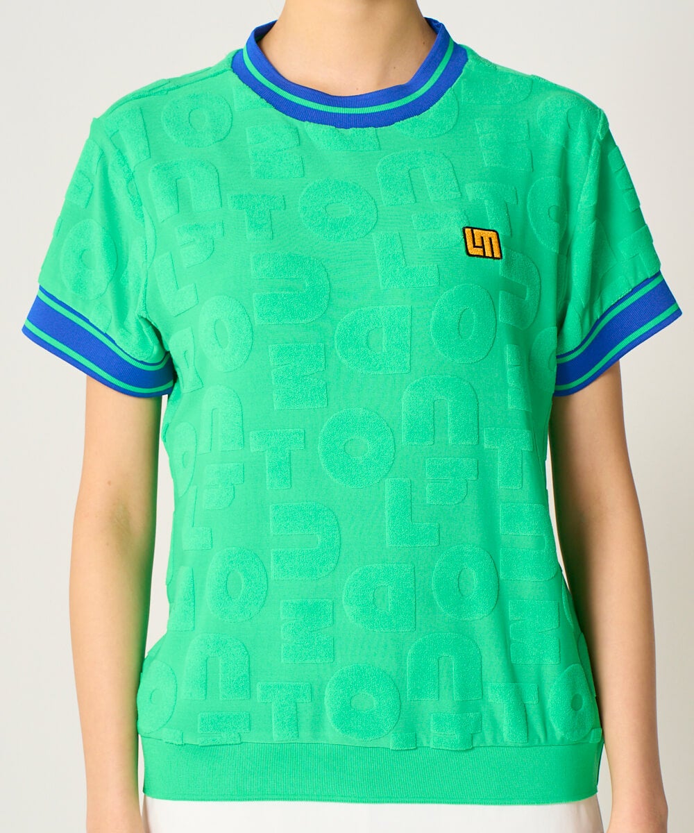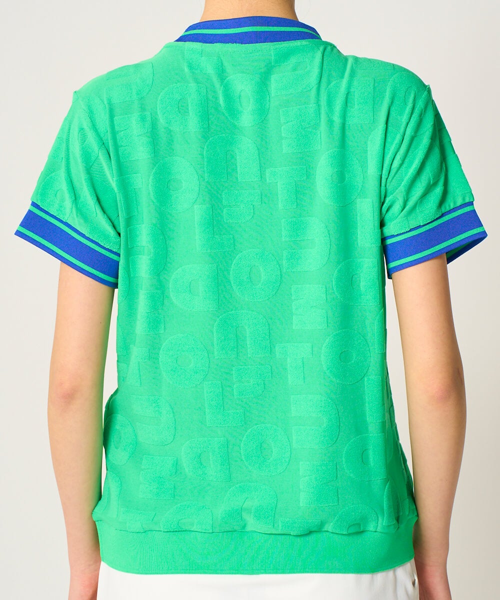 5. レディース パイルジャガードロゴ半袖シャツ グリーン