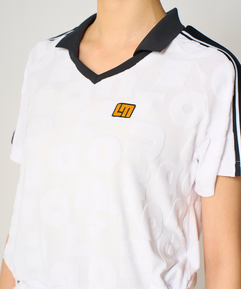 ロゴを纏う、ジャガードパイルのレトロスポーティーなワンピース。