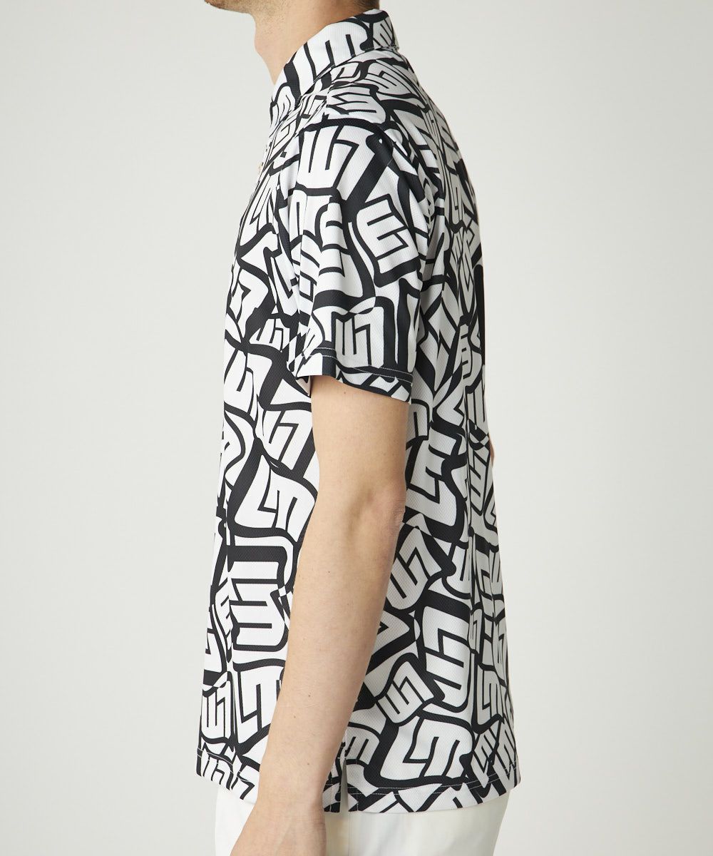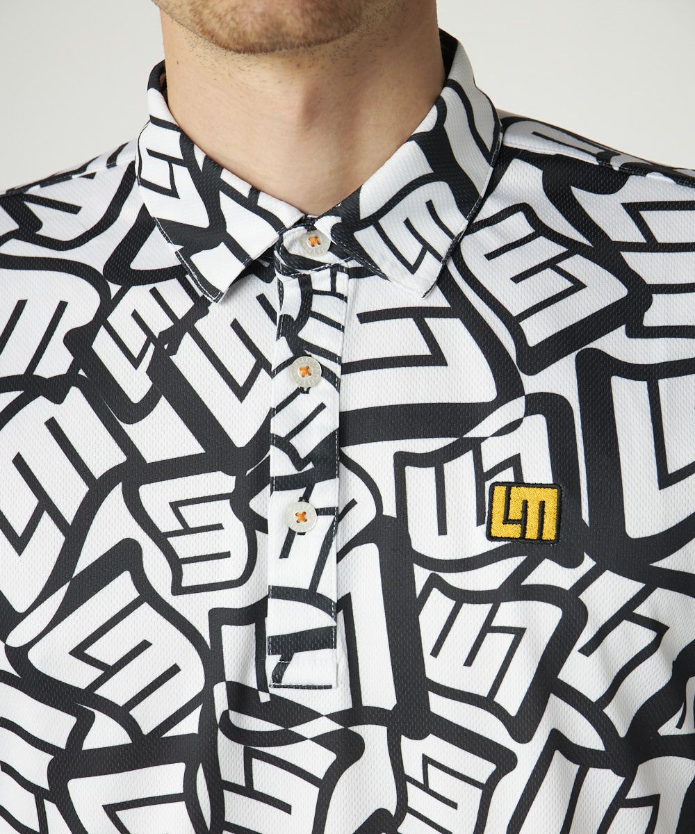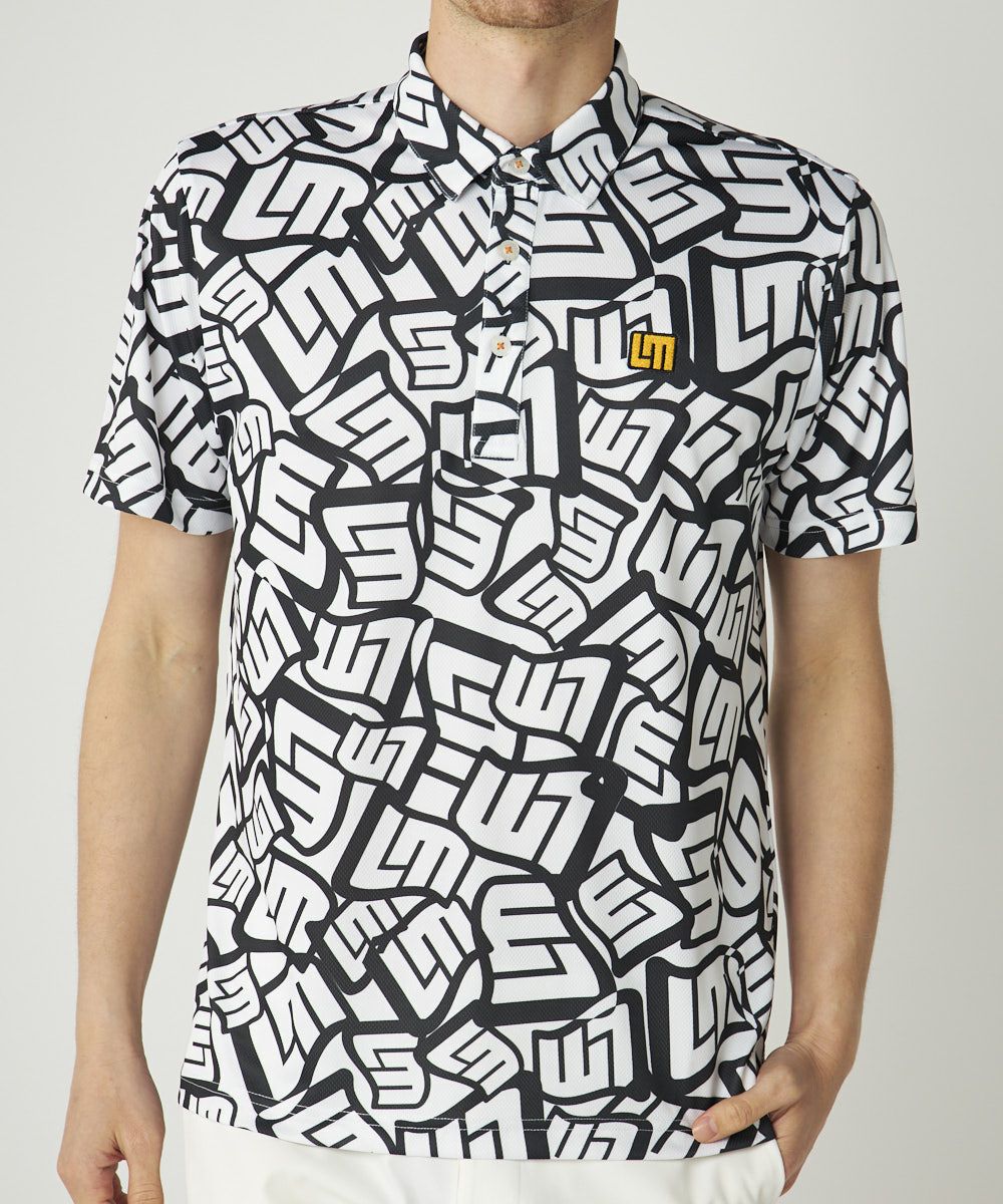 サラっとした肌触りのフリージングスキン素材を使用した柄半袖シャツ。トレンドのLMタイポグラフィックの柄での展開。ワントーンでコーディネートしやすいアイテムです。