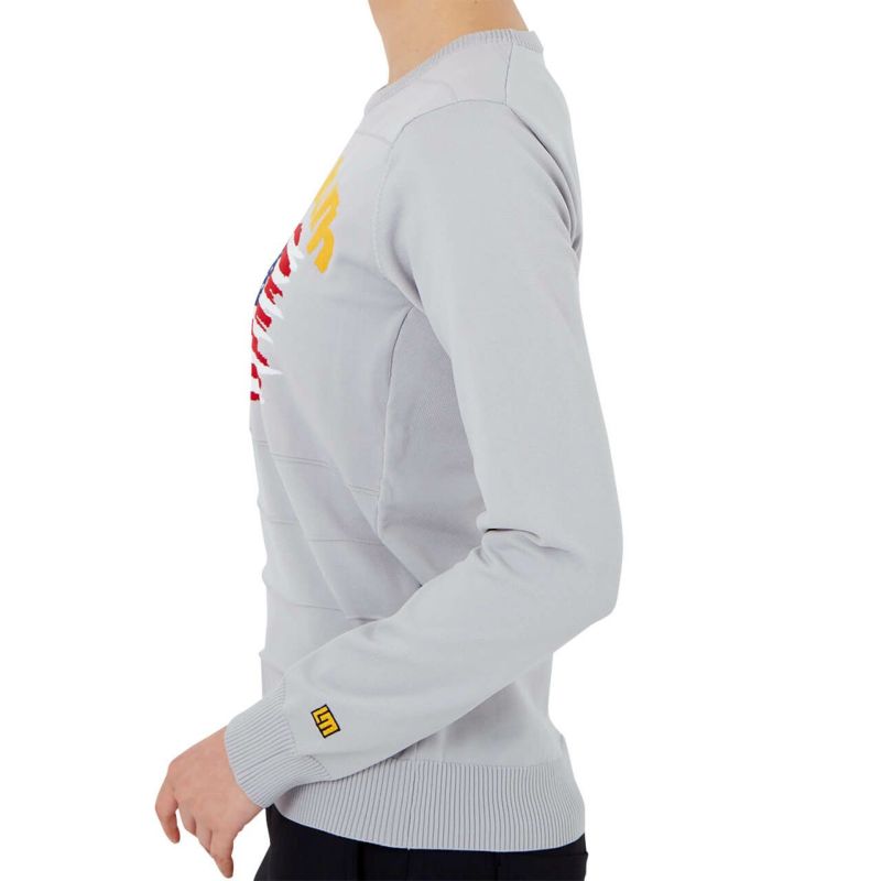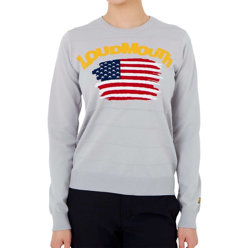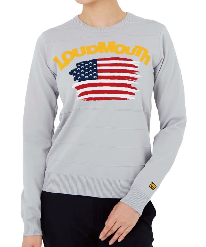 - レディース 丸首セーター 国旗柄 ミックスグレー