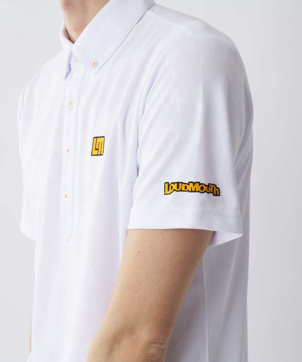 人気のタグス柄をエンボスで表現したボタンダウン半袖シャツ。