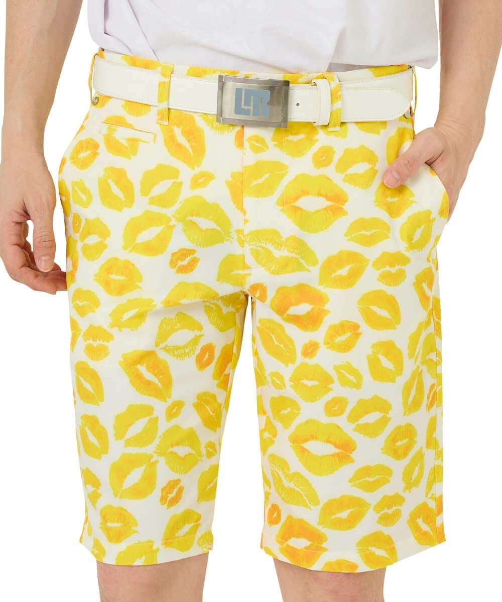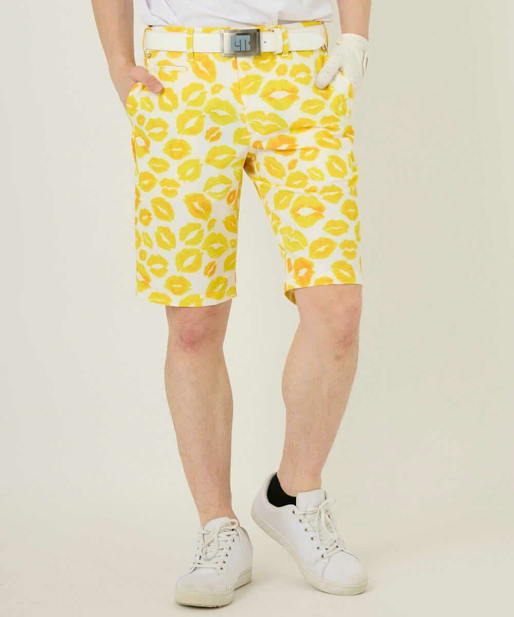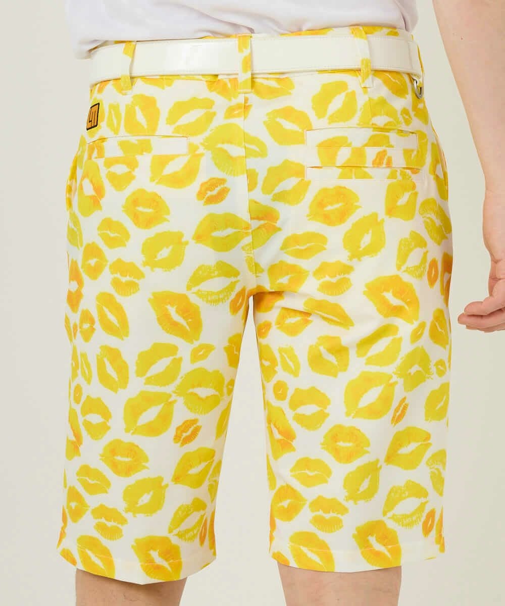 5. メンズ ショートパンツ ツイル素材 キッス柄 イエロー 吸汗速乾/UV/接触冷感