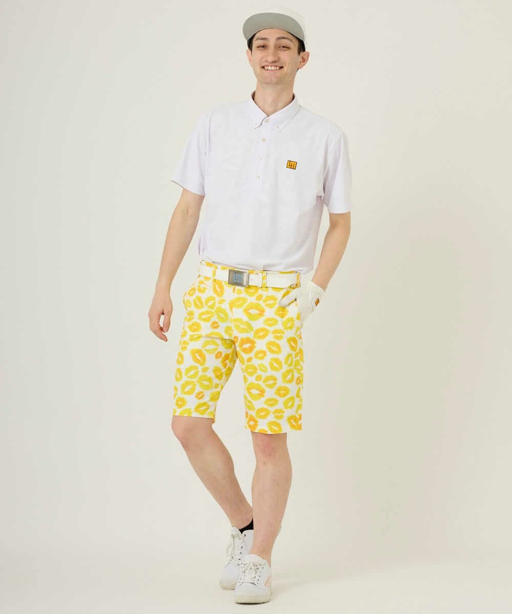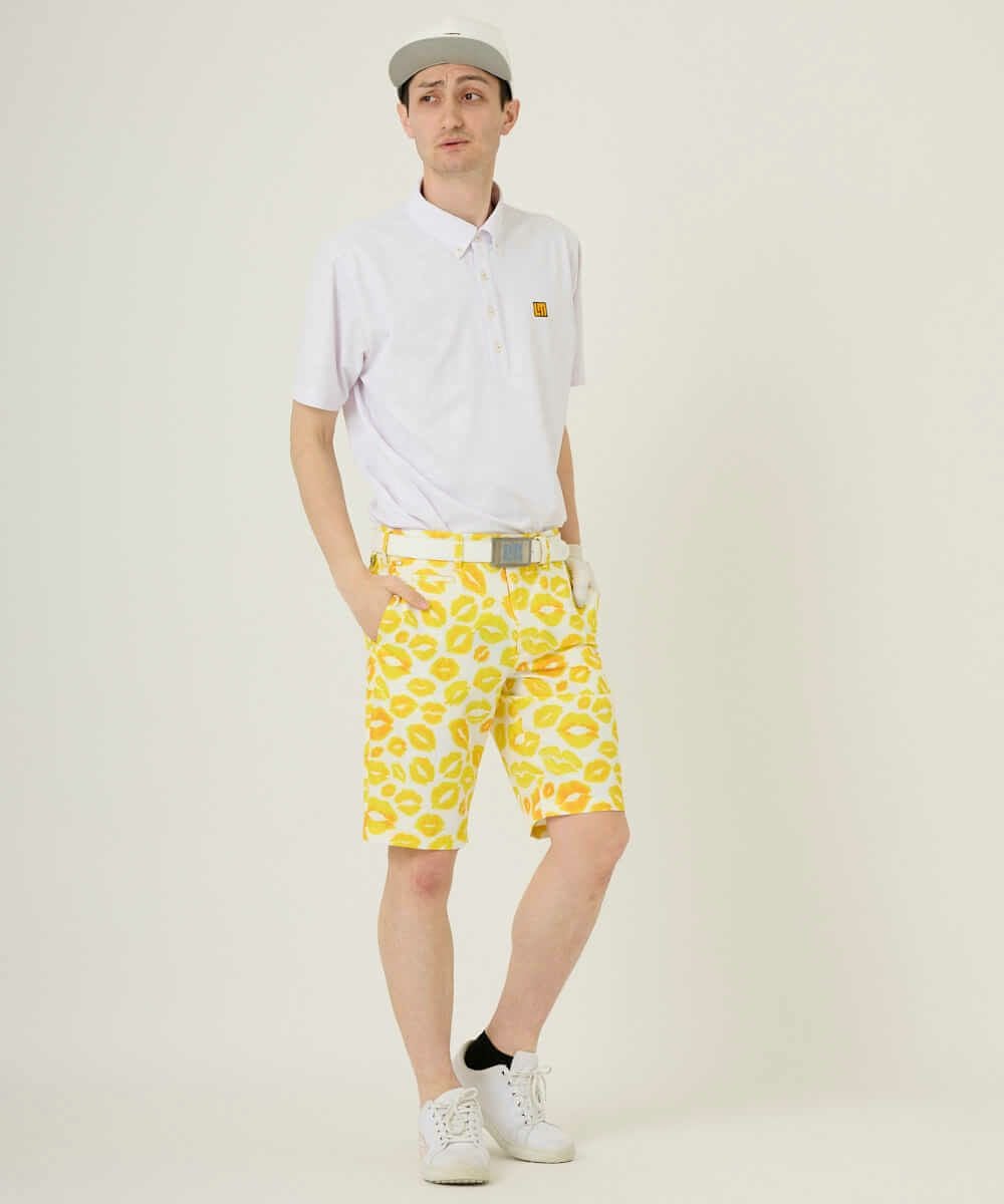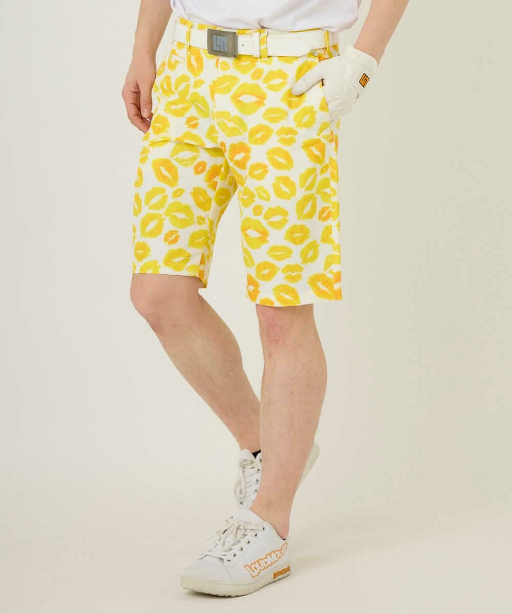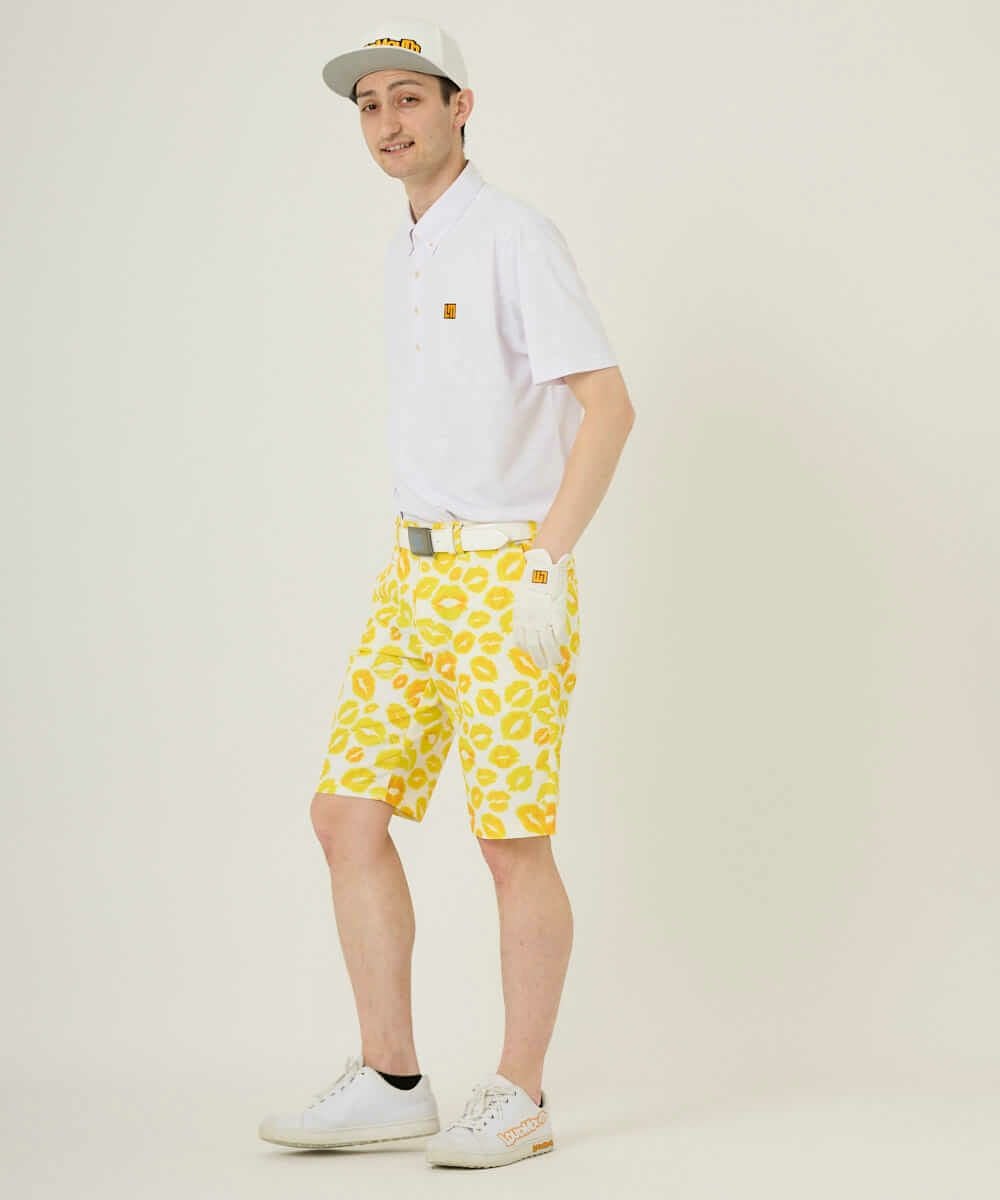 5. メンズ ショートパンツ ツイル素材 キッス柄 イエロー 吸汗速乾/UV/接触冷感