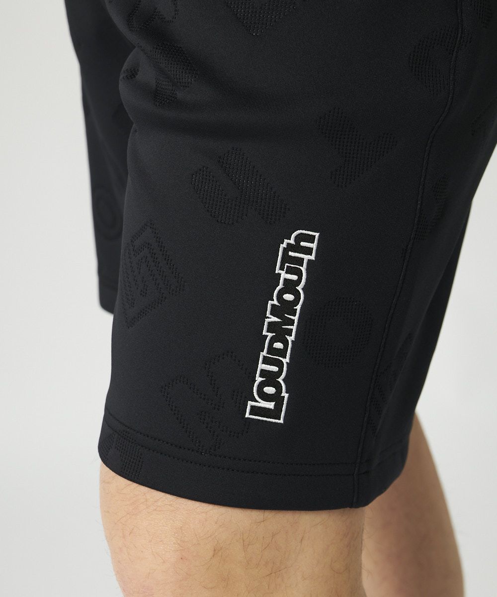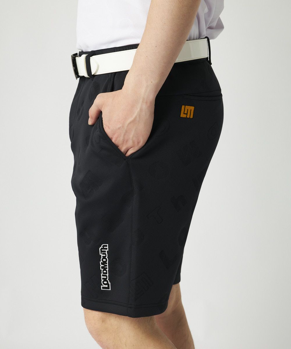 - メンズ ライトダンボールニット エンボス柄ショートパンツ ブラック