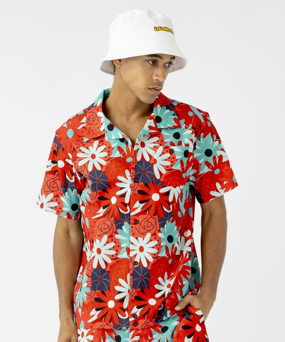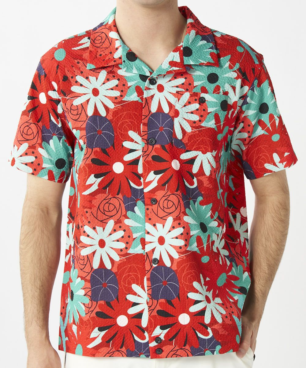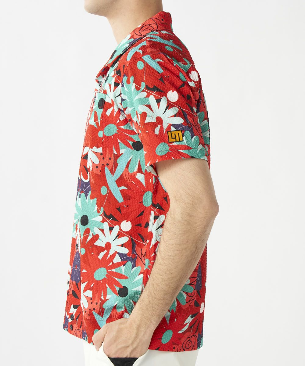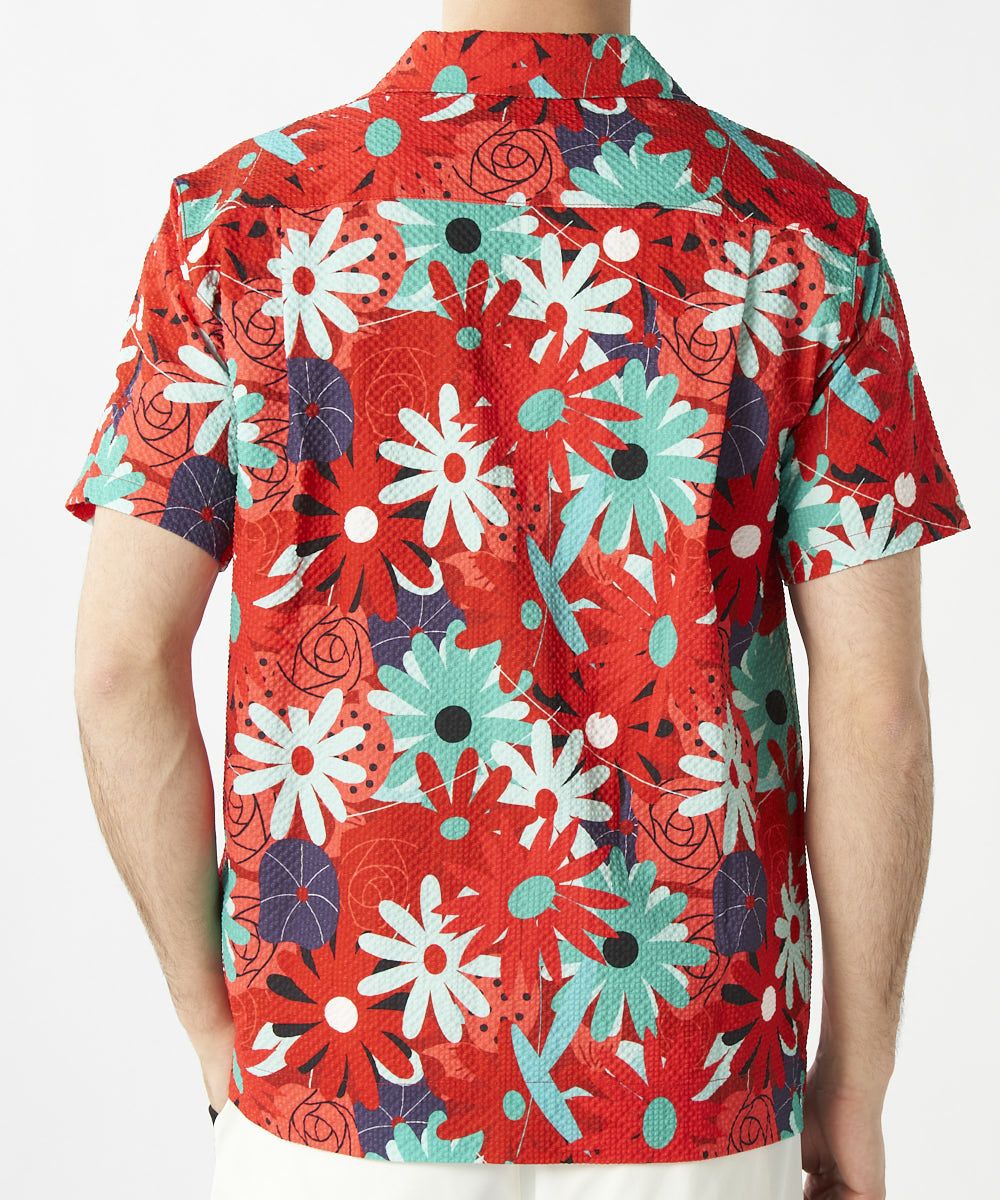 5. メンズ ニットサッカー 復刻柄 開襟半袖シャツ Mojave Aster/モハーベアスター