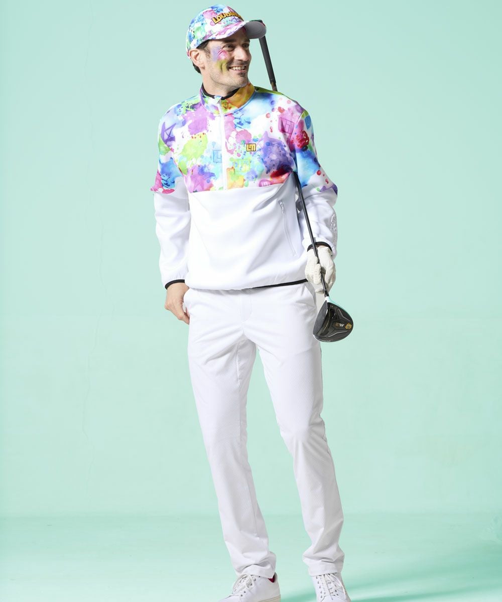 - メンズ 軽量ダンボールニット 柄切替ハーフZIPブルゾン ホワイト