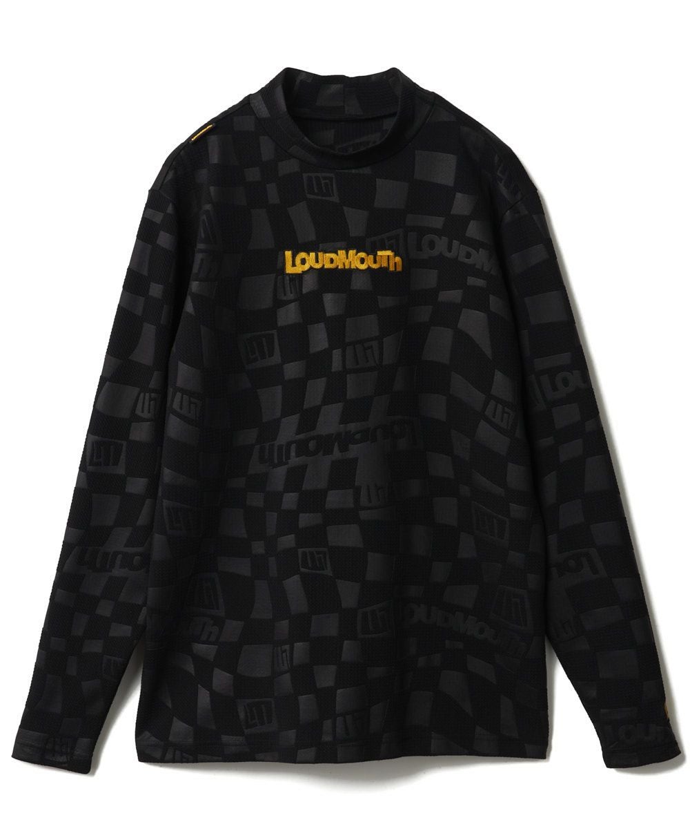 メンズ エンボスロゴ 長袖モックネックシャツ ブラック
