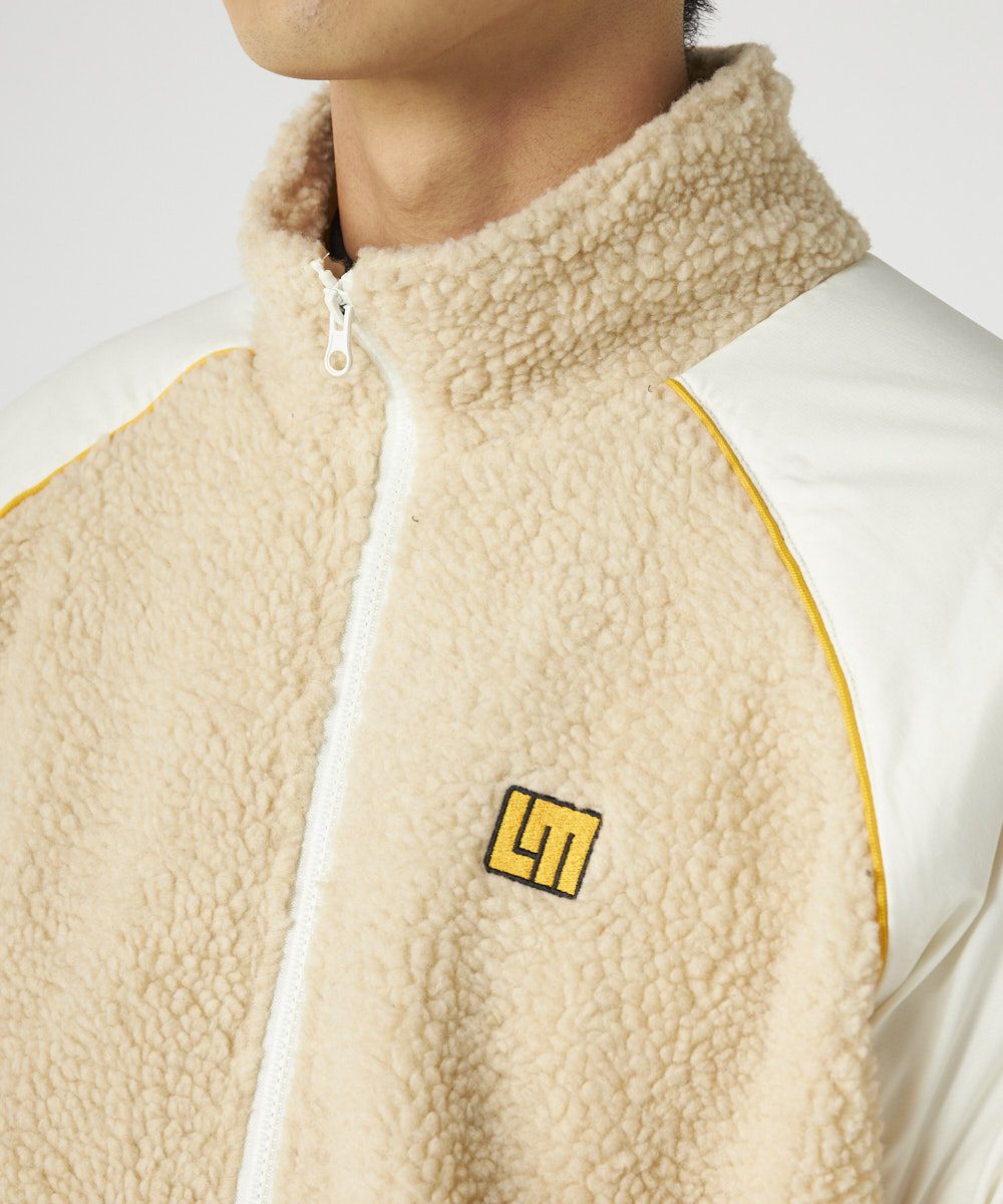メンズ ボア×タフタ配色ジップブルゾン ベージュ