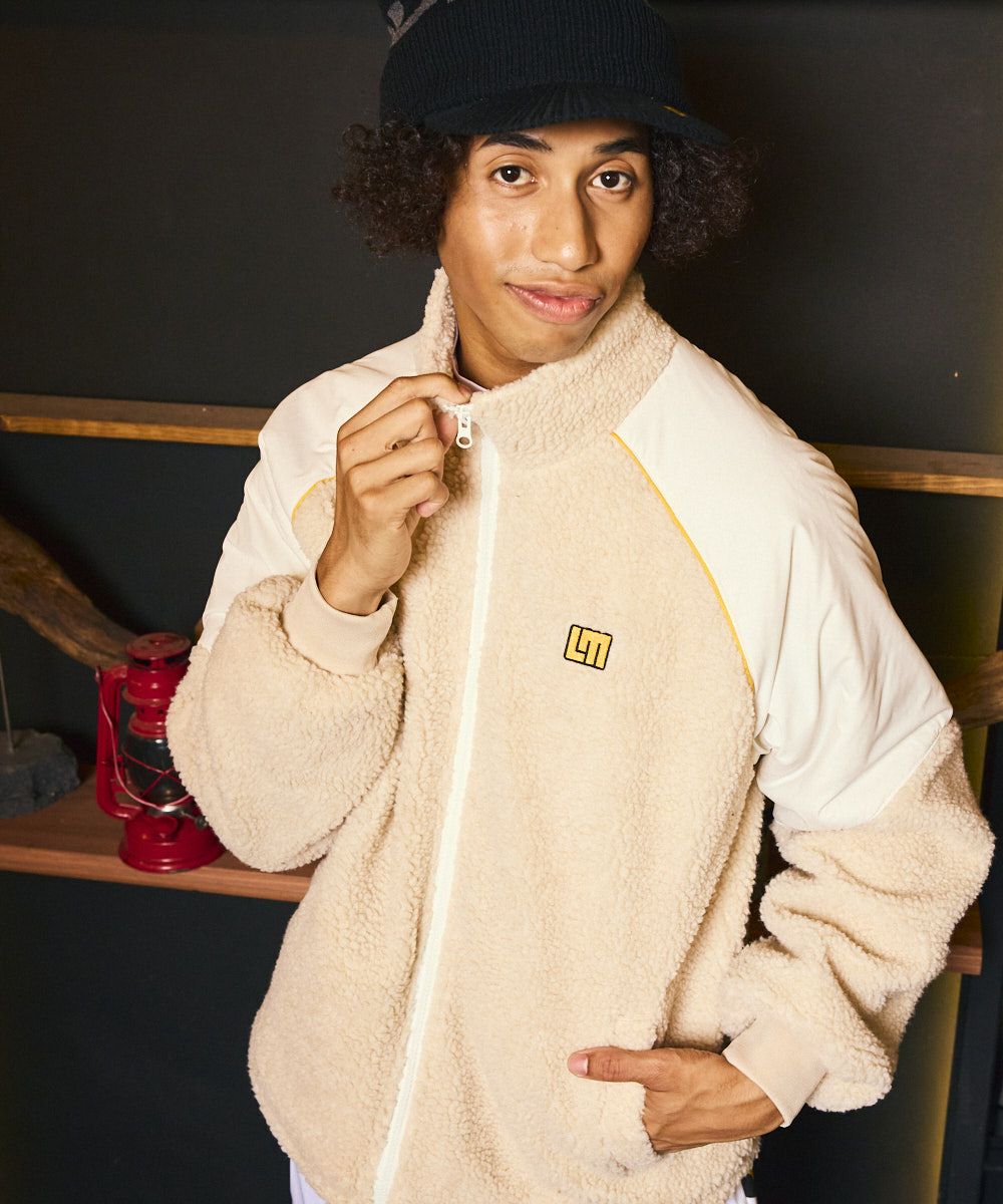 5. メンズ ボア×タフタ配色ジップブルゾン ベージュ