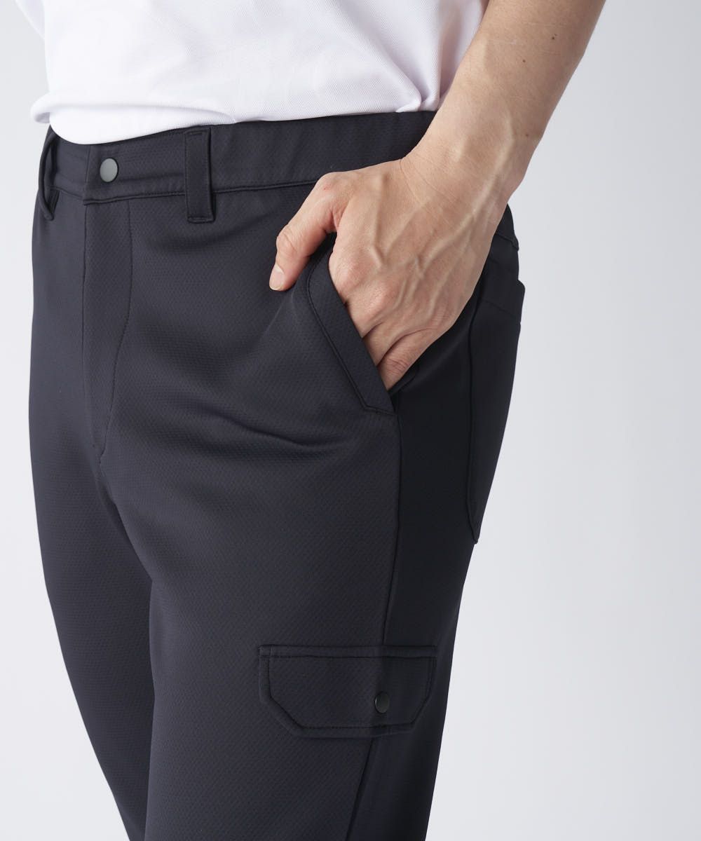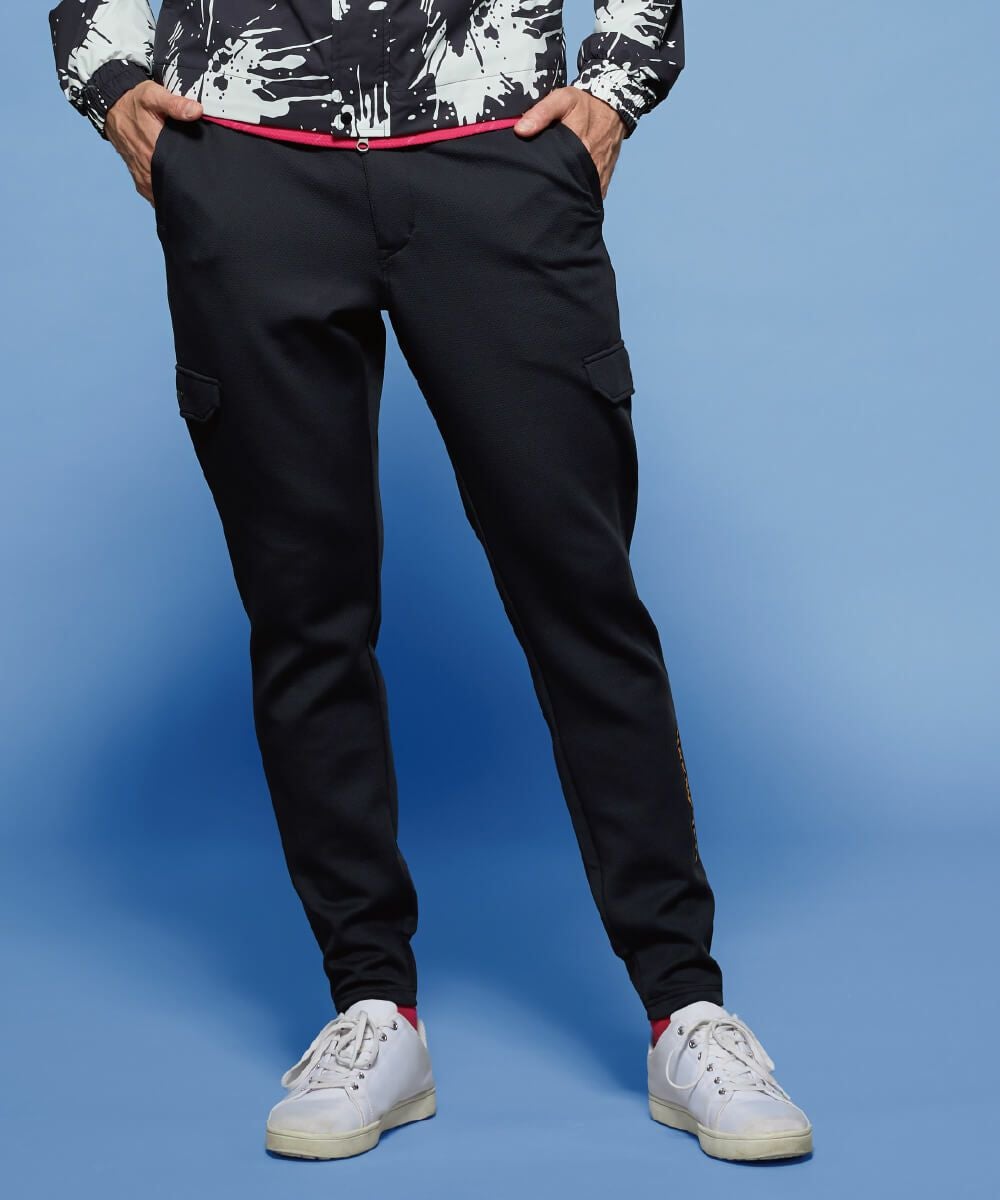 表面感のあるオックス調のダンボールニット素材を使用したジョガーパンツ。