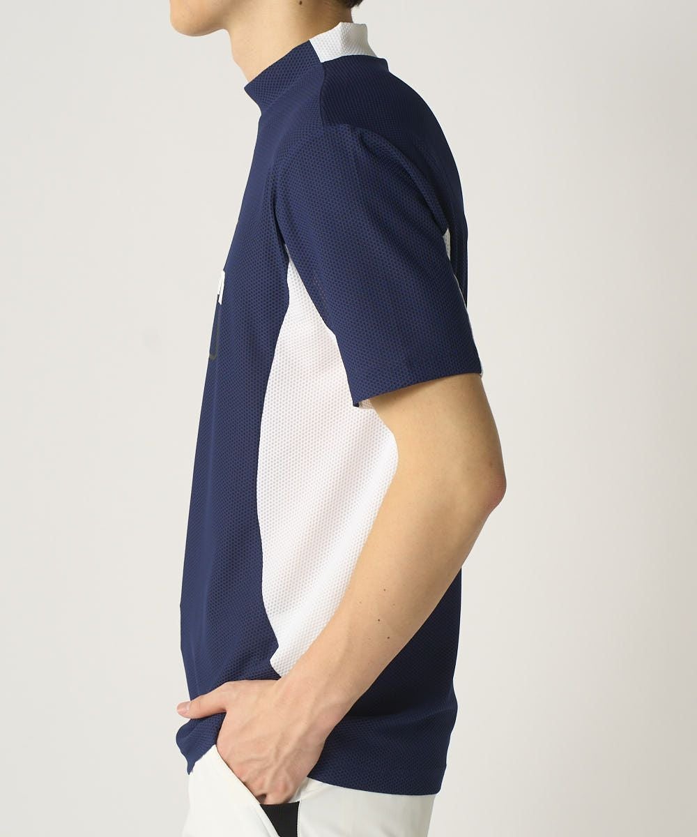 メンズ モックネック半袖シャツ ネイビー