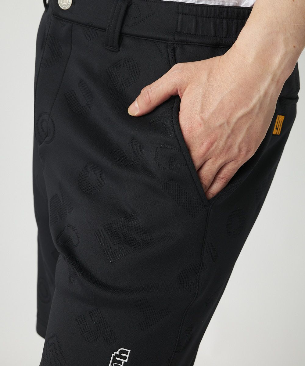 - メンズ ライトダンボールニット エンボス柄ショートパンツ ブラック