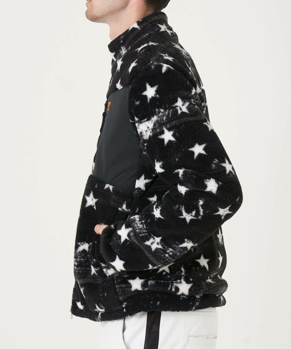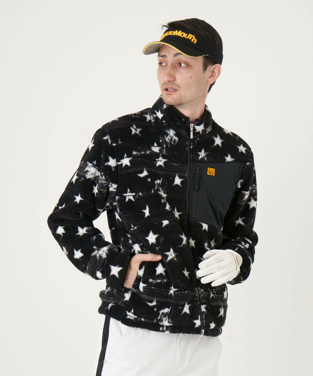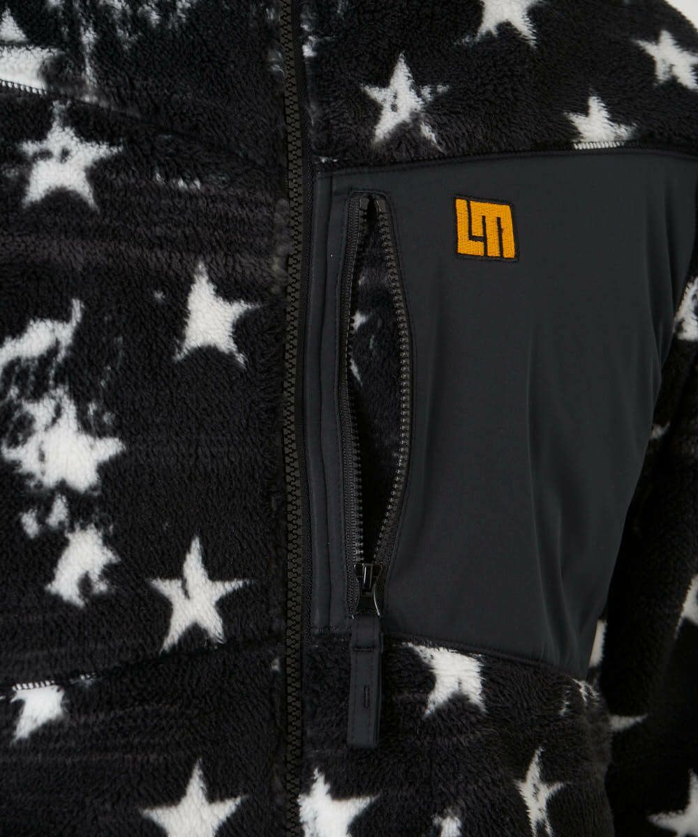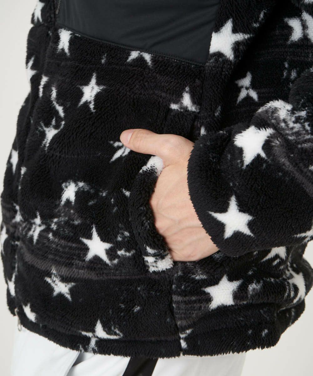 人気のあるStar 柄プリントのボアフリースジャケット。ボアフリース素材と裏地には発熱シルバーフィルムを使用しているので保温性抜群です。マスクや小物を収納できる胸ポケット仕様。