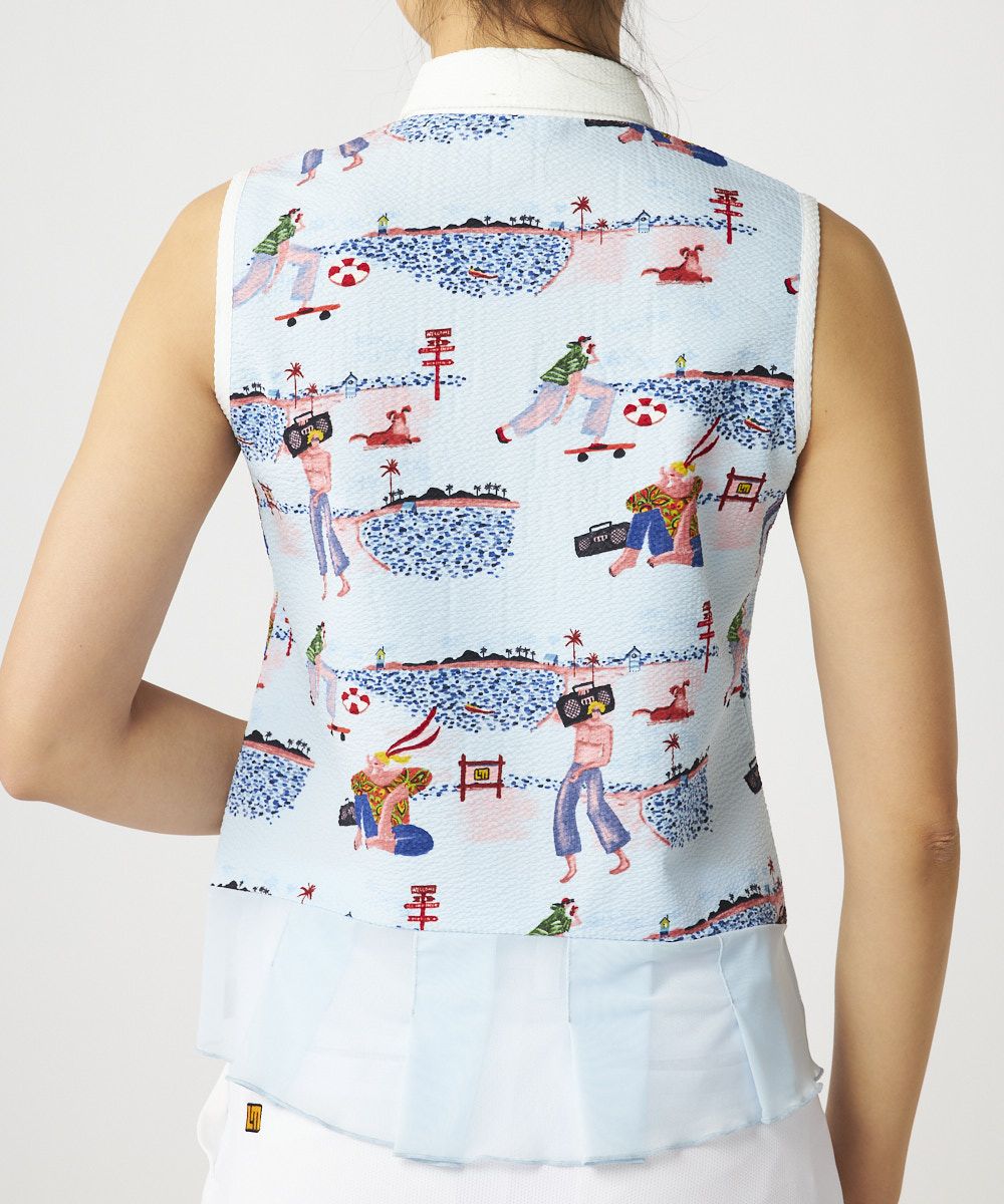6. レディース ニットサッカー 柄ノースリーブシャツ Loud Holiday/ラウドホリデイ
