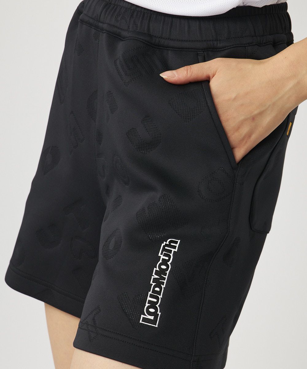 レディース ライトダンボールニット エンボス柄ショートパンツ ブラック