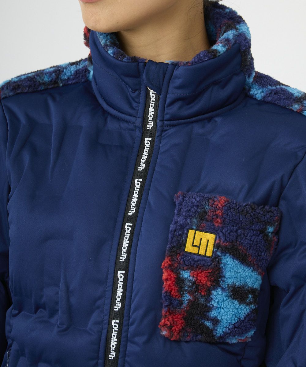 レディース ボア×キルトダウンブルゾン ネイビー