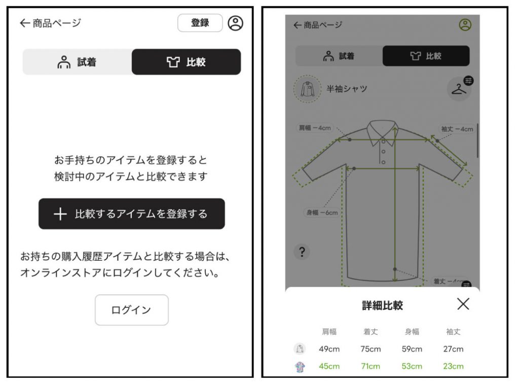 unisizeにログイン頂くことでお手持ちの洋服の実寸と比較が可能です。