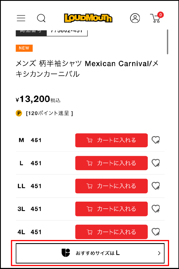 おすすめサイズの確認